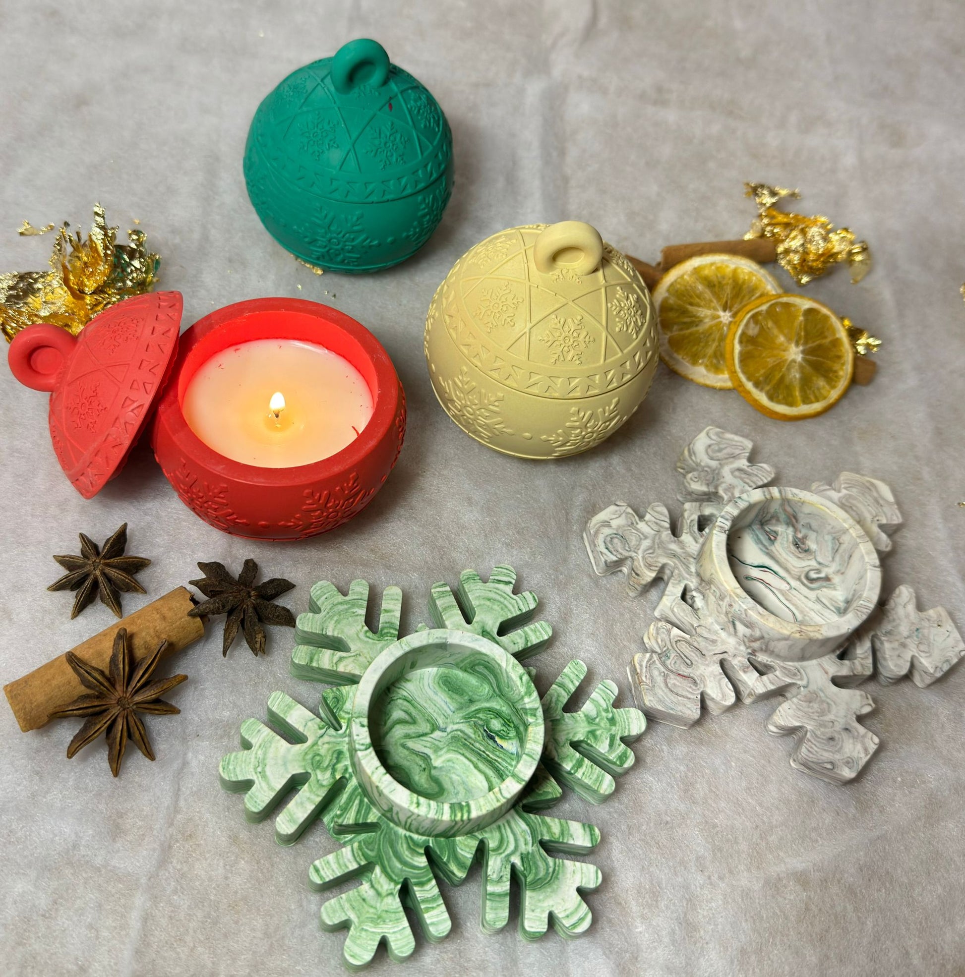 Disfruta de un taller navideño único en el que crearás tu propia vela en forma de árbol de Navidad realizada con resina ecológica, totalmente personalizado a tu gusto. Además, podrás elegir en el momento un complemento para acompañarlo: una bola navideña o unos portavelas, que también podrás decorar a tu estilo.