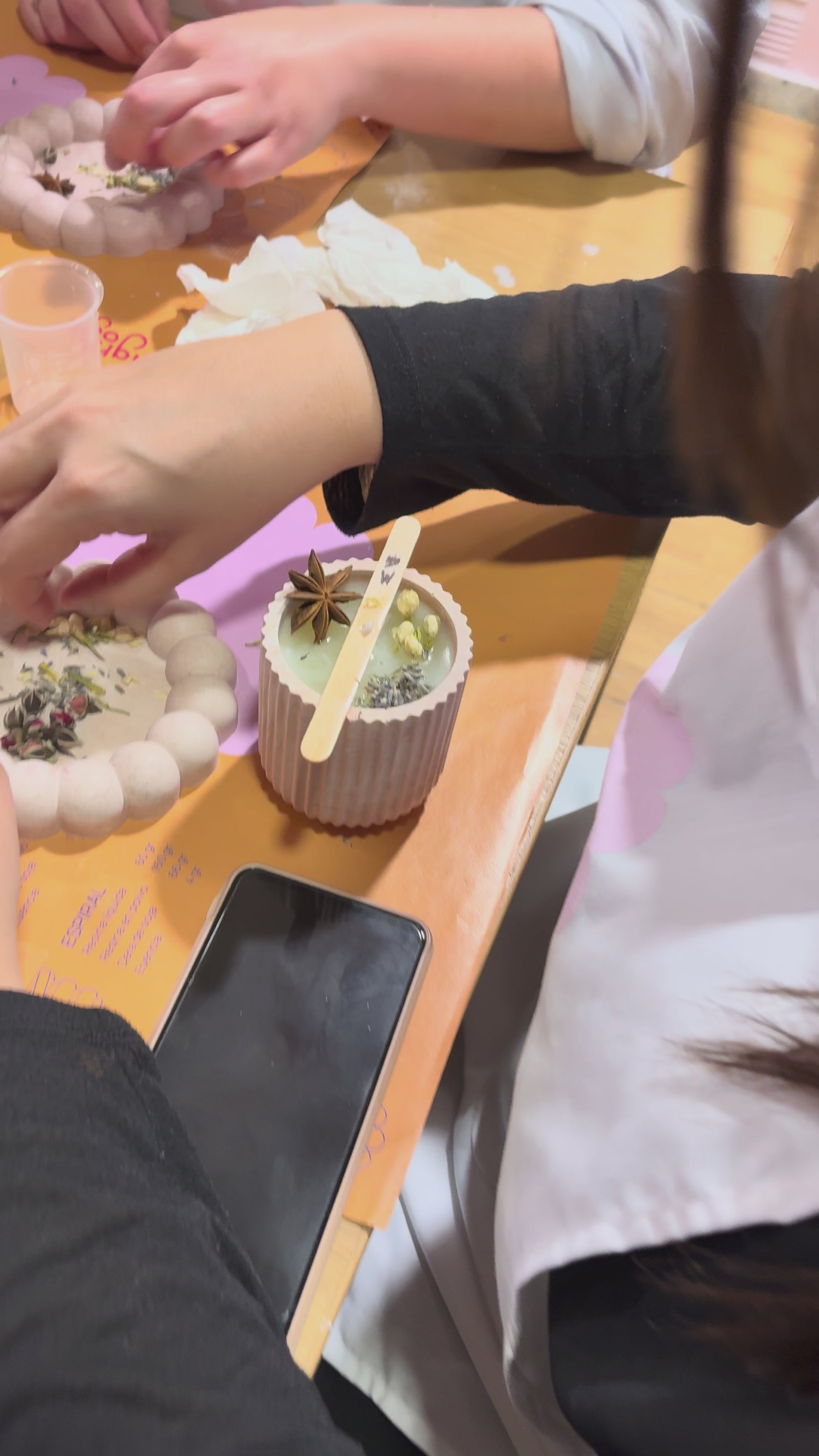 Incluye todos los materiales premium, aromas y herramientas necesarias. Solo tienes que venir con ganas de crear y pasarlo bien.